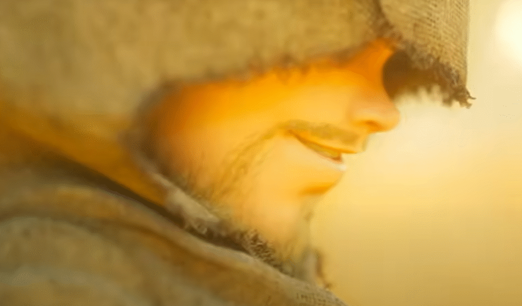 トレーラーにおいて、フードを被った謎の壮年男性が映っています。