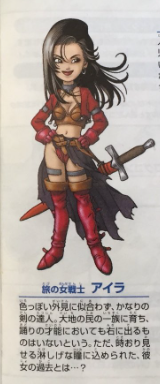 アイラは最後に仲間になるキャラであり、マリベル離脱後の現代のユバール一族のキャンプで仲間になるキャラであり、おそらくキーファの子孫である(明言はされていないが)肉弾戦に長けたキャラであり、活躍の場が多いキャラである。